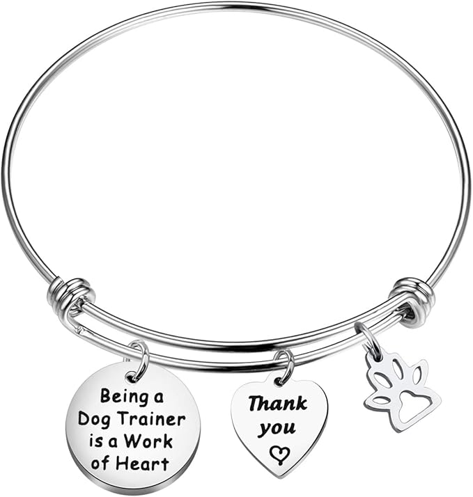 Engraved with “Being a Dog Trainer is a Work of Heart” — a sweet and meaningful keepsake.
