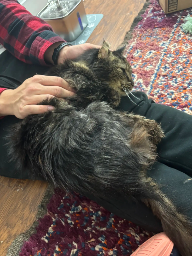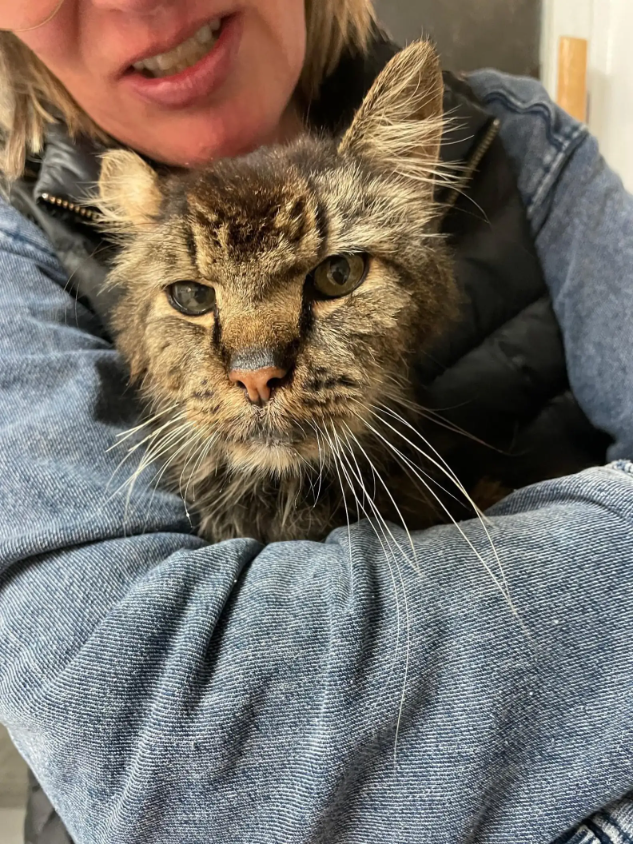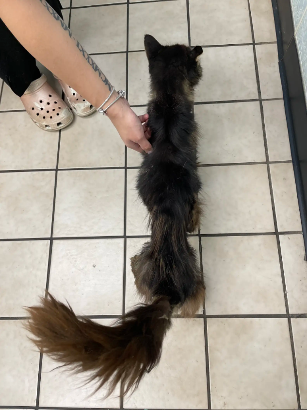 As soon as she arrived at her rental, a frail cat ran straight toward her car. The scruffy stranger, later named Rufus, was painfully thin, covered in mats, and clearly in distress.