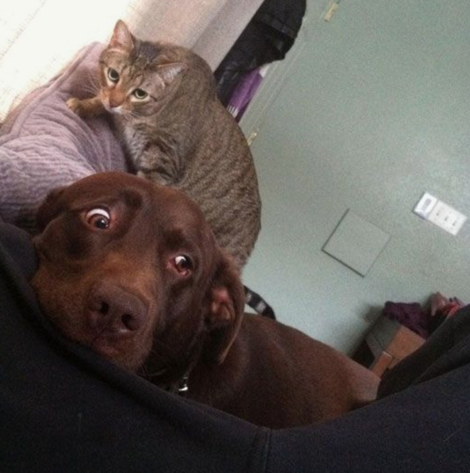 #3 This gentle golden giant is scared of a 1.5lb kitty.