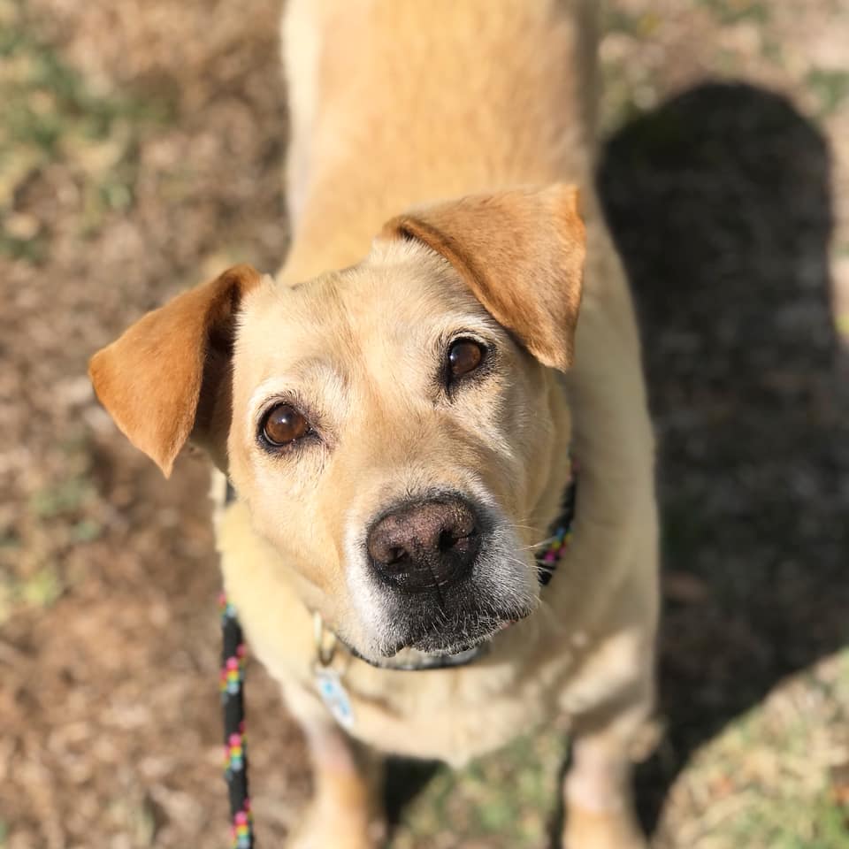 Larry, an 8-year-old yellow Labrador Retriever, was found living on the streets after his family abandoned him when they moved away.