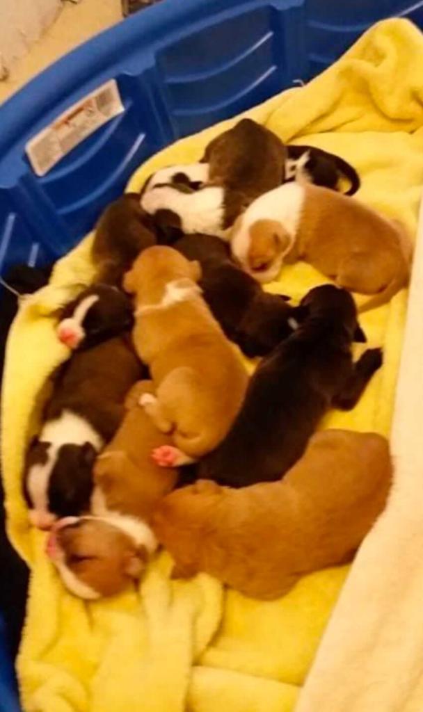Dumped on their doorstep was a new Abandoned Pit Bull mother and her 10 tiny babies, with no assumed owner in sight.