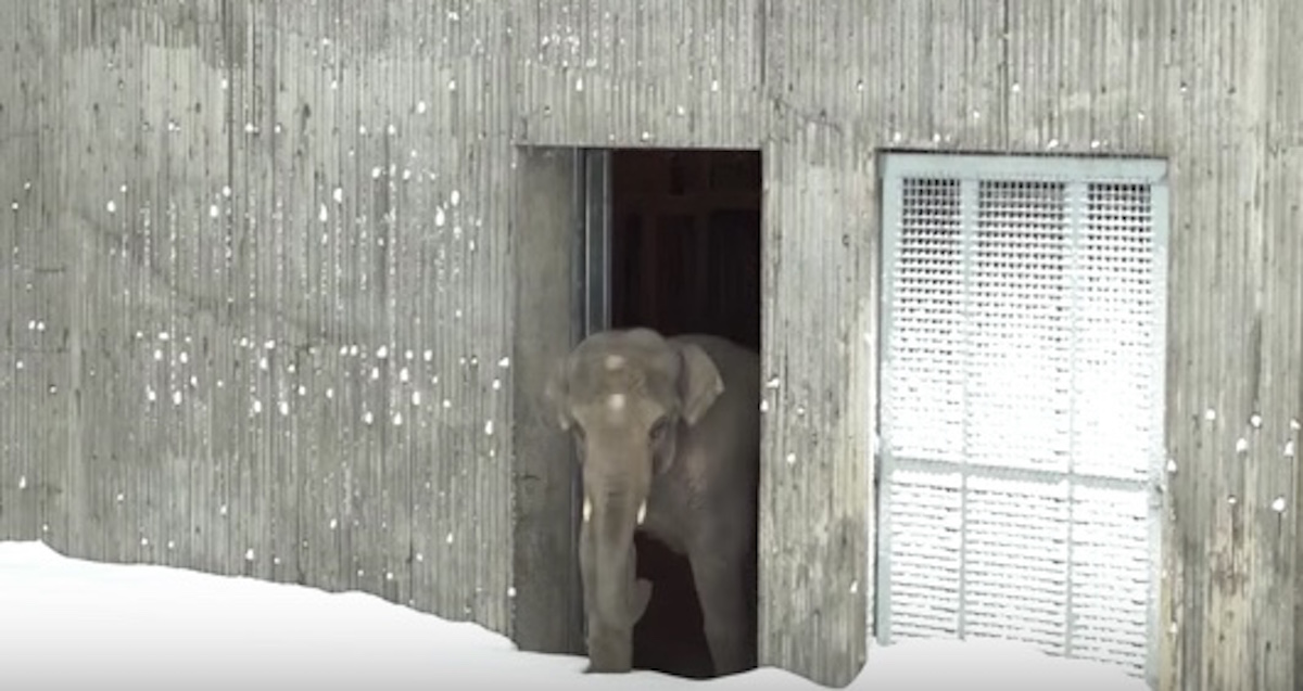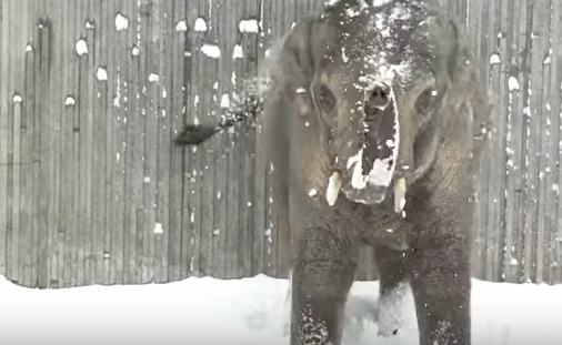 The Asian elephant would naturally live in a warm and tropical climate; however, when he peeked his head outside from his shelter, he couldn’t help but take off running in pure excitement. You can even hear his squeals of excitement as he tosses snow into the air with his trunk.