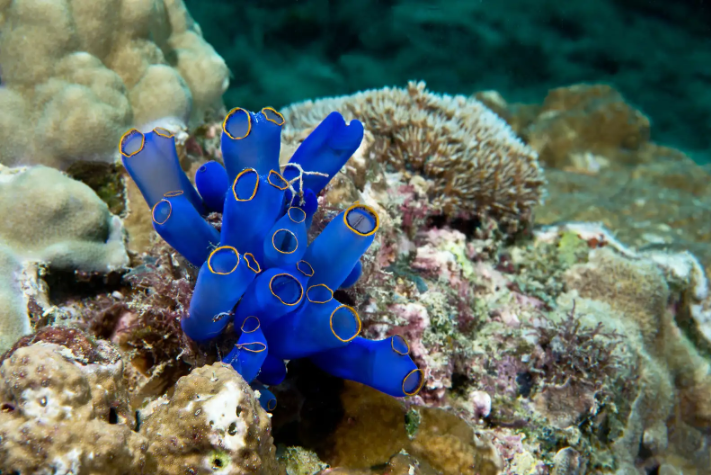 “Tunicates are marine filter feeders whose bodies are basically sacks or tubes that draw in and expel water, snagging tiny particles of floating stuff to eat,” explains the Santa Barbara Museum of Natural History.