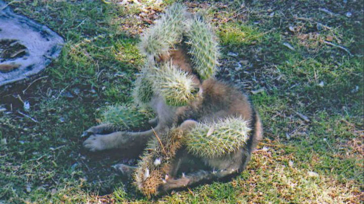 Closer inspection revealed the cacti covered creature was no dog at all, but a barely weeks-old coyote pup.