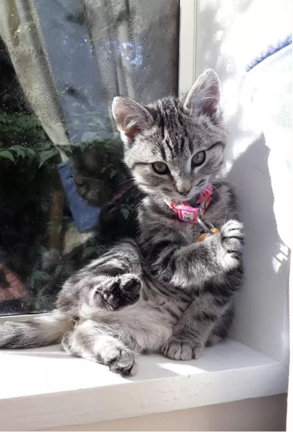 “She has a tendency to throw herself at things and climb them,” Catnap Café explained. “It’s pretty cute — but if you’re the target, it can be a little painful.”