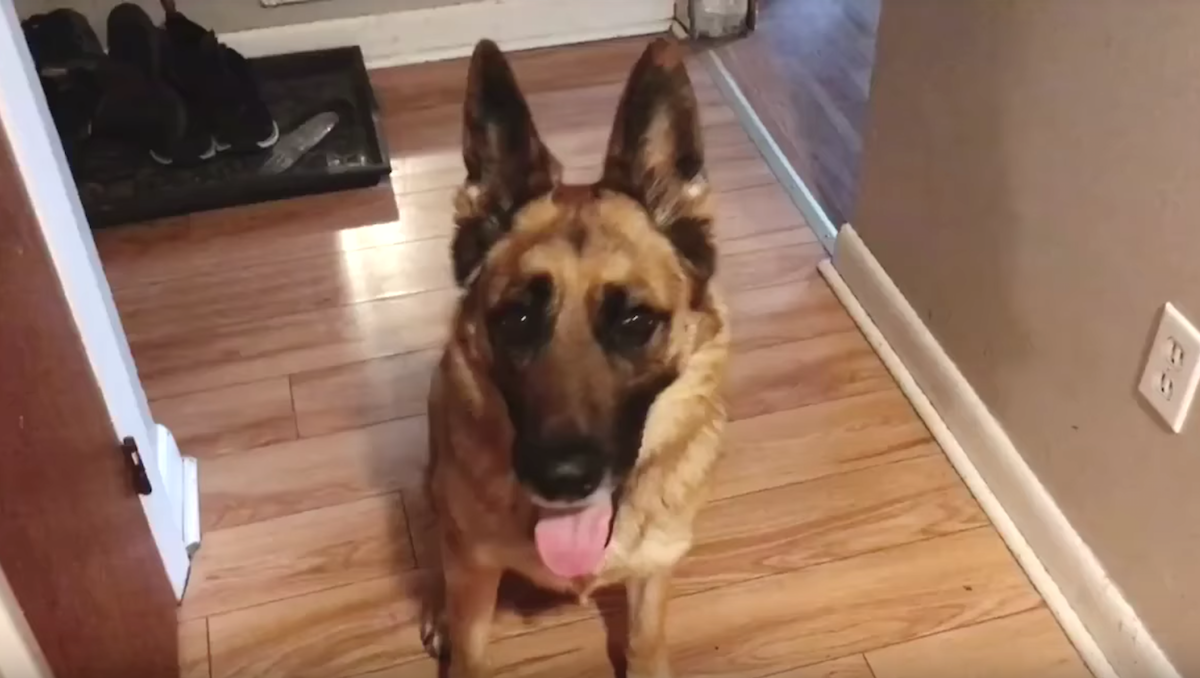 Chevy the German Shepherd is a pro at waking the kids up in the mornings. She just sits there and waits for Mom’s word, and then does her thing.