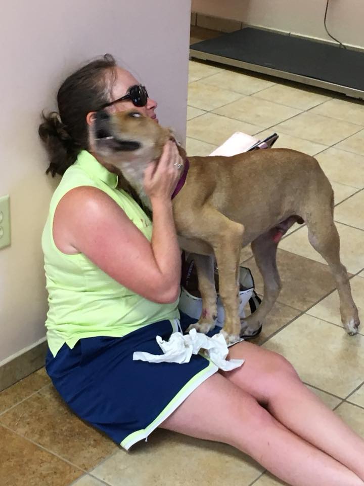 Andrea was in town on a business trip from Maine and ran into Jarret and saw the dog. She immediately offered to help, “Columbo”.