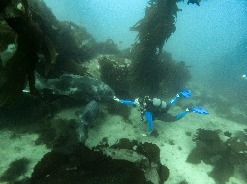 A group of professional divers exploring the waters around California’s Catalina Island recently spotted a breathtaking sight: a massive, critically endangered giant sea bass gliding past them. Encounters with these gentle giants are rare — but the divers’ excitement quickly turned to alarm.