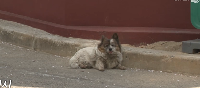Left to a life on the streets neighbors tried to help her but she refused to move so they give her food while she sits in the street; they’ve even made a kennel for her so she has somewhere to sleep at night.