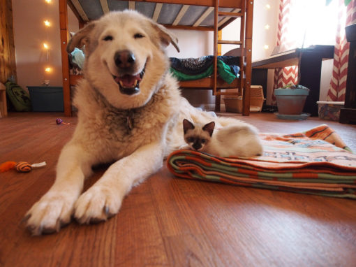 But the problem? Flora’s 20-year-old feline friend had recently just passed away. Flora, a beautiful malamute, was understandably upset. She just wanted her best friend back. No one could figure out how to turn this dog’s frown upside down.