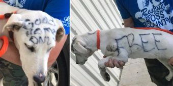 Dog is abandoned in park with “FREE” written on her fur in permanent marker