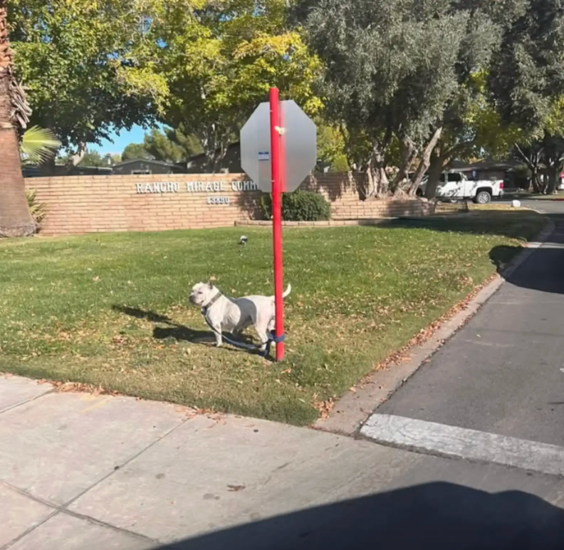 A Good Samaritan noticed the dog alone at the stop sign and chose not to ignore her. Instead of assuming someone would return, they stayed by Juno’s side for hours, watching, waiting, hoping the situation wasn’t what it seemed.