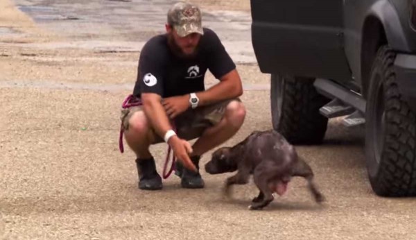 In response to the security’s phone call, rescue workers from the Villalobos Rescue Center in New Orleans promptly arrived and soon discovered the sad-looking dog.