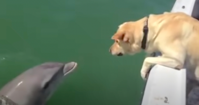The dog talks and talks and talks to try to get to the bottom of this mystery, and the poor dolphin can’t get a word in edgewise!