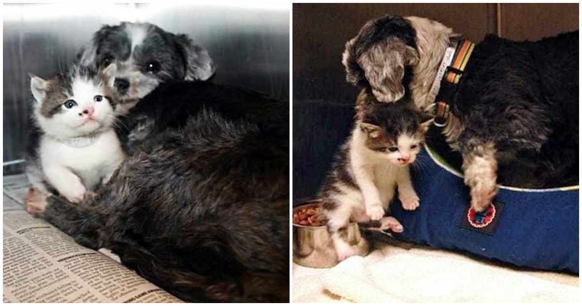The dog, a five-year-old Shih Tzu, was very protective over the little kitten and acted like her mother. The kitten felt comforted by the dog’s embrace, and the two of them were inseparable.