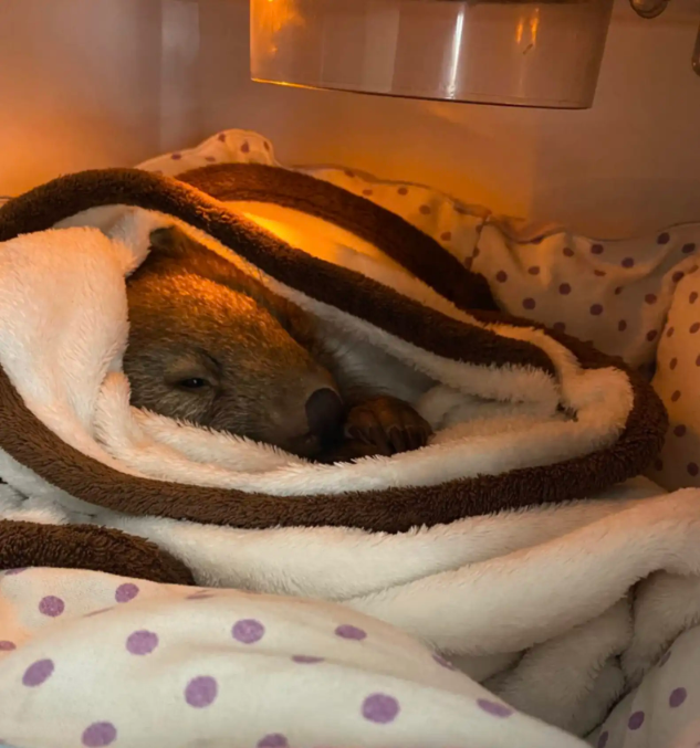 Now, the rescued wombat — lovingly named Hope — is recovering beautifully. She’s drinking well, exploring her new surroundings, and will soon be paired with another orphaned joey so she can grow up with a companion of her own kind.