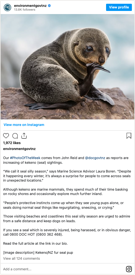 The animal, known locally as a kekeno, is a New Zealand fur seal — a species commonly found along the country’s shores.