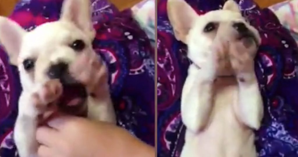 The little girl can really sing, and the French Bulldog pup somehow knows exactly when to come in with the assist.