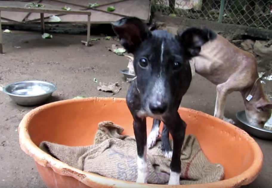 The next step was to give the puppy a medicated bath for his mange. This would be his new ritual. This type of mange can be treated; it just has to be treated diligently or it won’t resolve. Animal Aid volunteers happily give medicated baths to all their animals with mange and those baths work miracles.