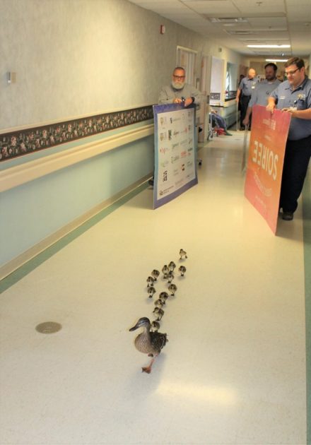 Each year, a mother duck parades her brand-new set of fuzzy ducklings down the hospital corridor. She’s not just showing off her adorable brood, either!