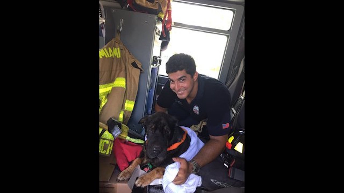 (Photos and video of Miami firefighter saves senior dog via FB)