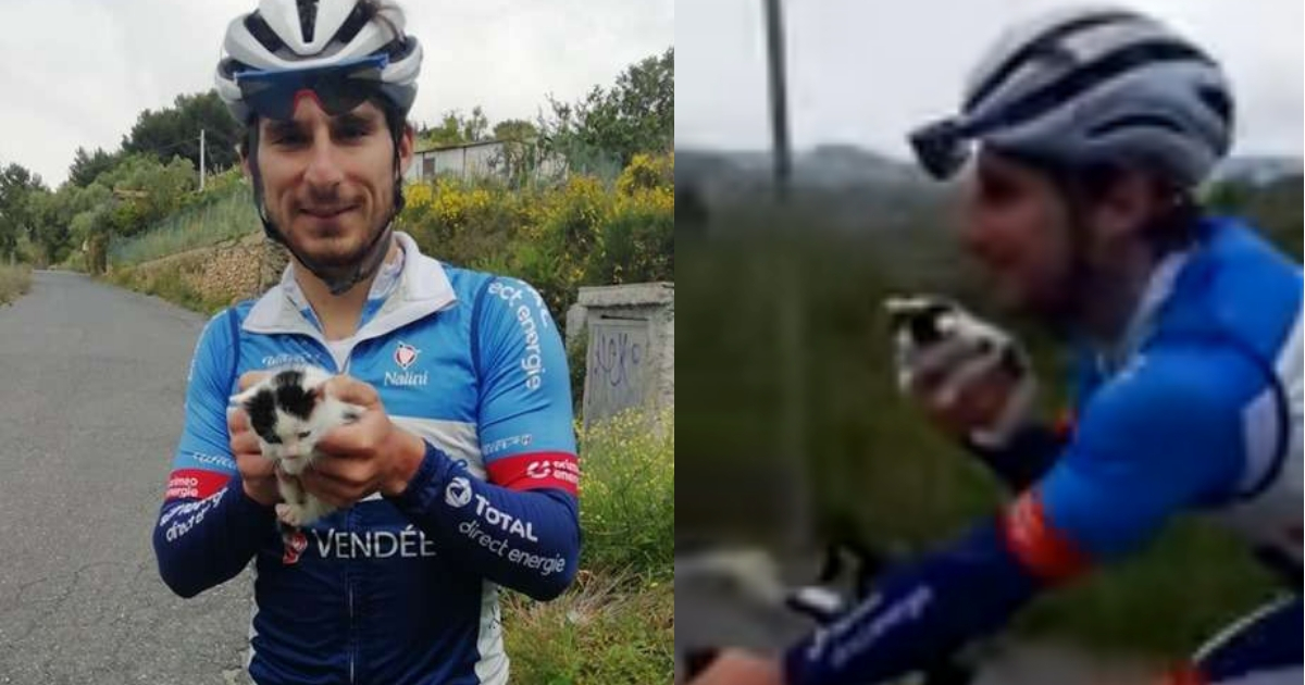 Bonifazio knew that he had to act quickly to save the cat. So, he held the kitten with one hand and quickly cycled for the next hour until he could take the cat somewhere safe where it could get the care it needed.