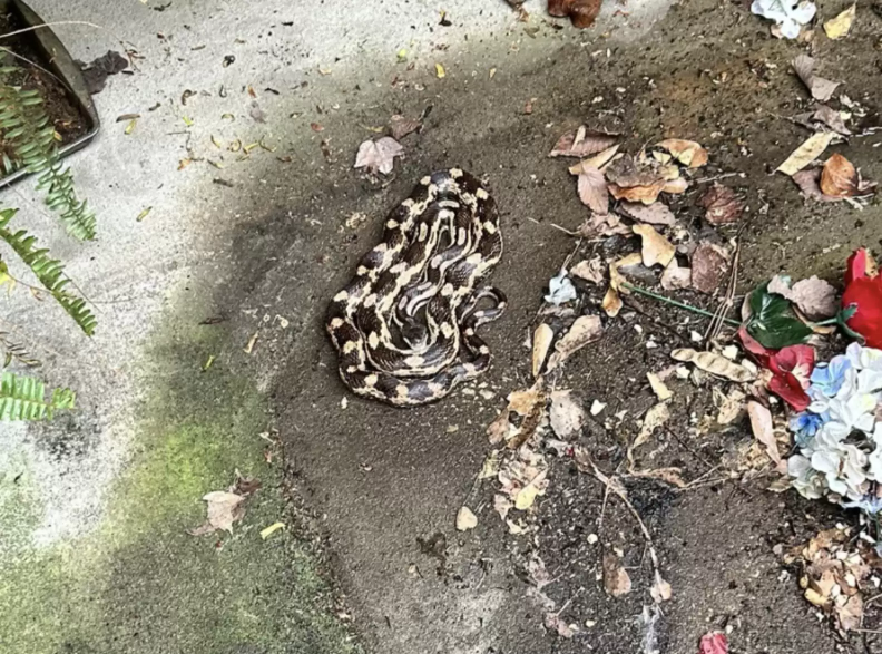 While they’re completely nonvenomous and harmless to people, this one’s patio hideaway wasn’t the safest spot for him to stay.