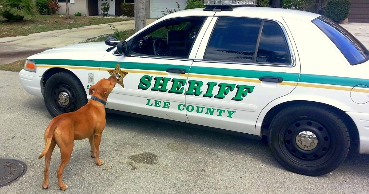 However, the Pit Bull realized that the officers were onto him. Soon, the massive pooch abruptly walked to the patrol car and stood up on his hind legs to peep in through the window.