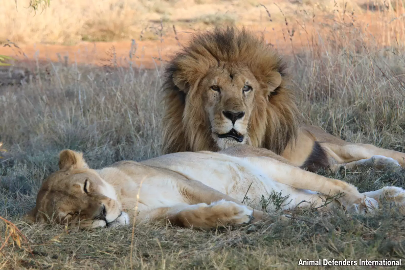 Back in 2014, Animal Defenders International (ADI) saved the family from the brutal circus that once held them captive. Leo and his sons — Chino, Coco, and Rolex — were rescued first. But the circus tried to evade authorities, hiding Muñeca and their daughters, Africa and Kiara, hundreds of miles away.