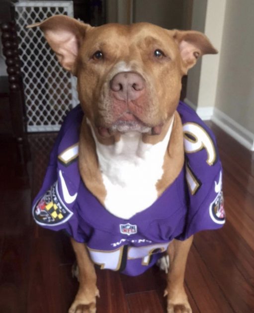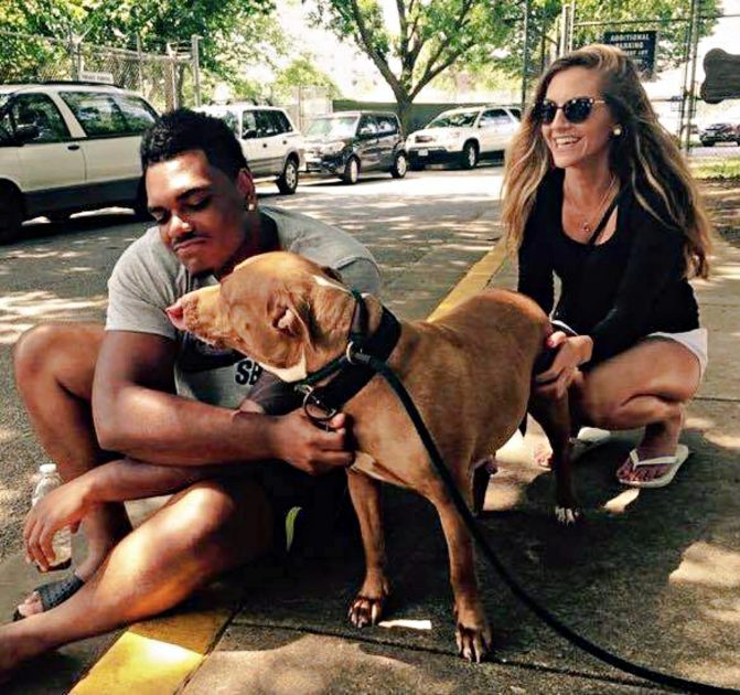Then one day, Winter’s life suddenly changed, a real-life Prince Charming (and his entourage) walked in the doors of the shelter. BARCS told the story on its Facebook page. NFL sports star, Ronnie Stanley, his girlfriend, and his Baltimore Ravens teammate, Alexander Lewis, went to the front desk and Stanley said, “We are looking for a dog that’s been here a long time and maybe not-so-adoptable.”