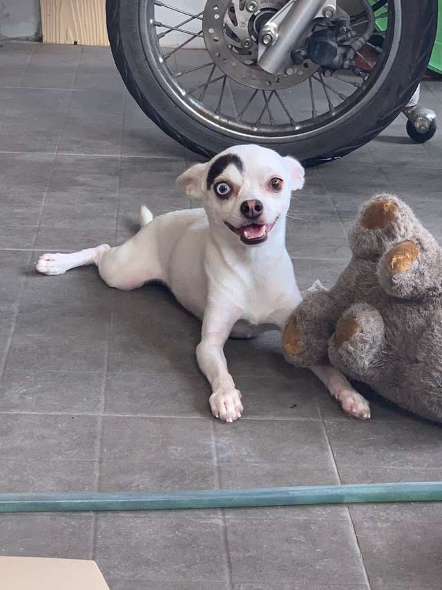 Some people think it’s fake and that his owner drew it on with a marker, but it is very real. Lucky is a very unique and special looking pup, but he’s in as good of health as any other dog!