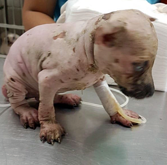 Soon after, the dogs’ fur began to fall out, and tiny blisters emerged all over their little bodies.