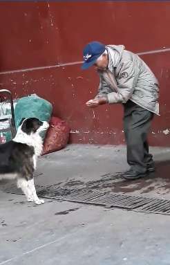 On Sunday, Pamela Altamirano Sanchez posted a video, believed to have been shot in Ecuador. In it, an older man is seen happily providing water to a dog on the street, having poured it into his cupped hands from a spigot the pup couldn’t reach.