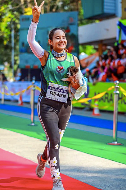 Klongsanum told Runner’s World that running nearly 20 miles carrying the dog was a challenge and twice as tiring than a normal marathon, but she couldn’t resist his adorable looks.