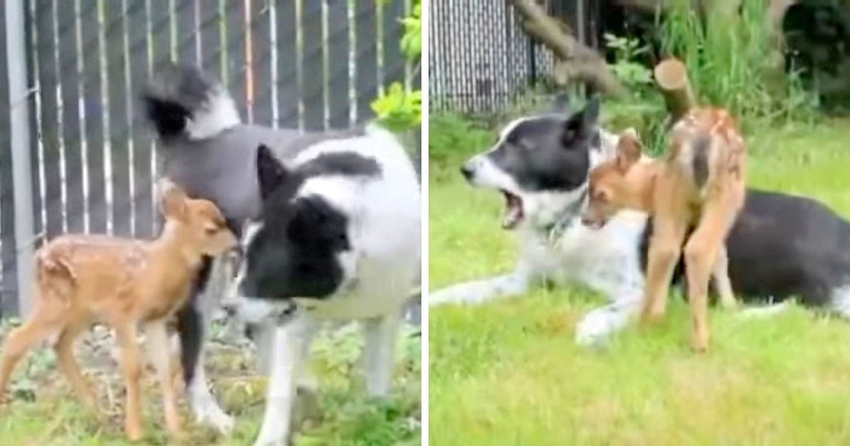 Click the video below to watch how the tiny fawn found his way into Mishka’s heart!