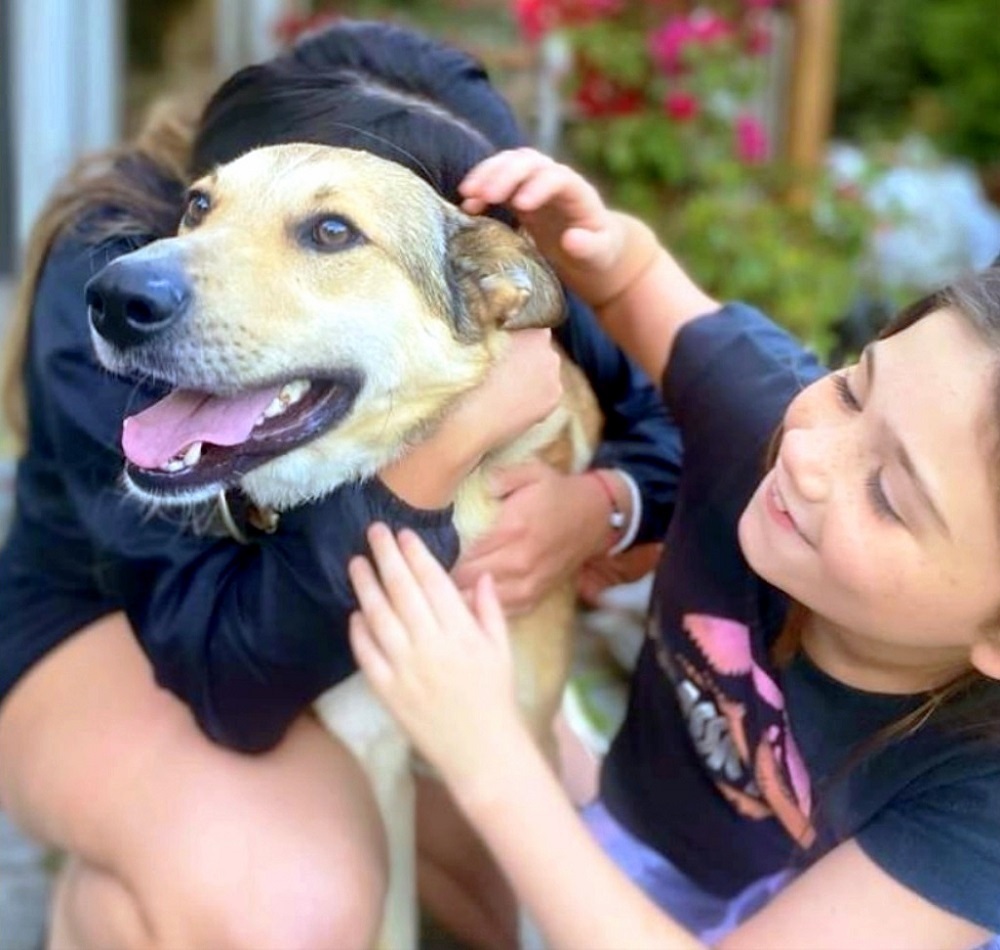 He then takes turns to greet his human siblings with his big hugs and non-stop tail wags!