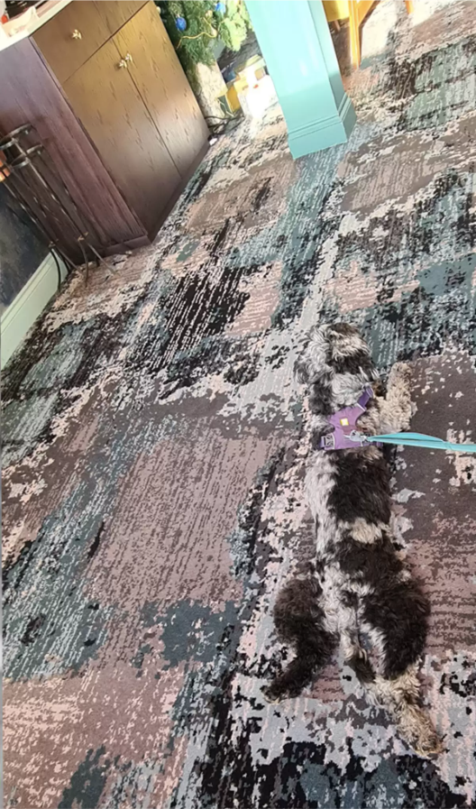Lady Poppington’s accidental camouflage quickly went viral — and her owner couldn’t help but laugh at her newfound stealth skills.