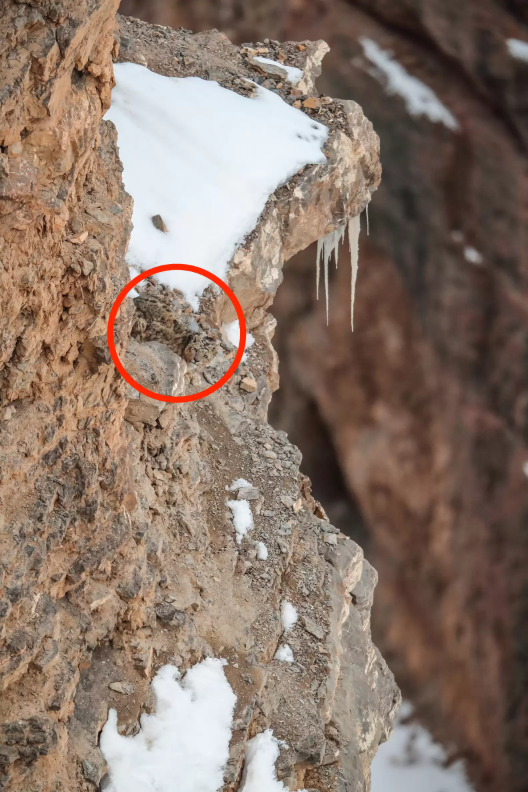 At first glance, it looks like an ordinary mountain landscape — a rugged slope dusted with snow. But somewhere in that photo lurks a snow leopard, perfectly camouflaged in its natural habitat.