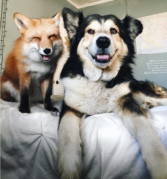 As it turns out, the pretty fox has an equally adorable best friend named Moose. He’s a rescued Australian Shepherd/Malamute mix who became her friend from the moment her mother brought her home.