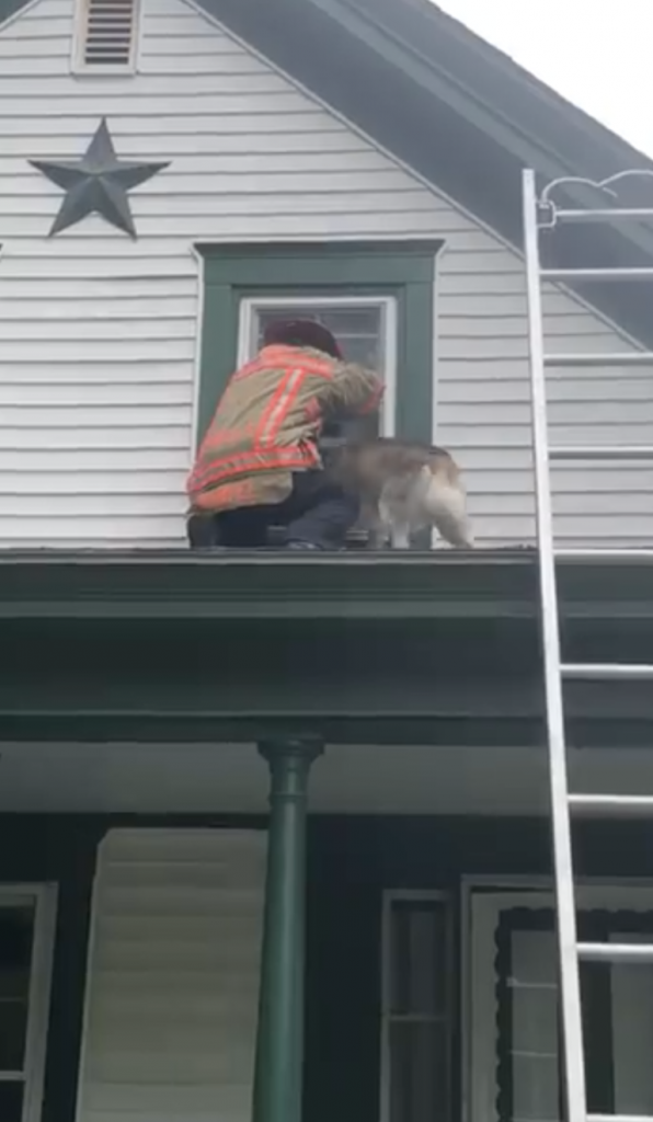 Jasper the Siberian Husky got himself into a bit of a bind. Somehow, the sweet 10-year-old pooch wound up on the roof of his family’s home in Wells, Maine. In order to get the dog to safety, firefighters were summoned to the scene.