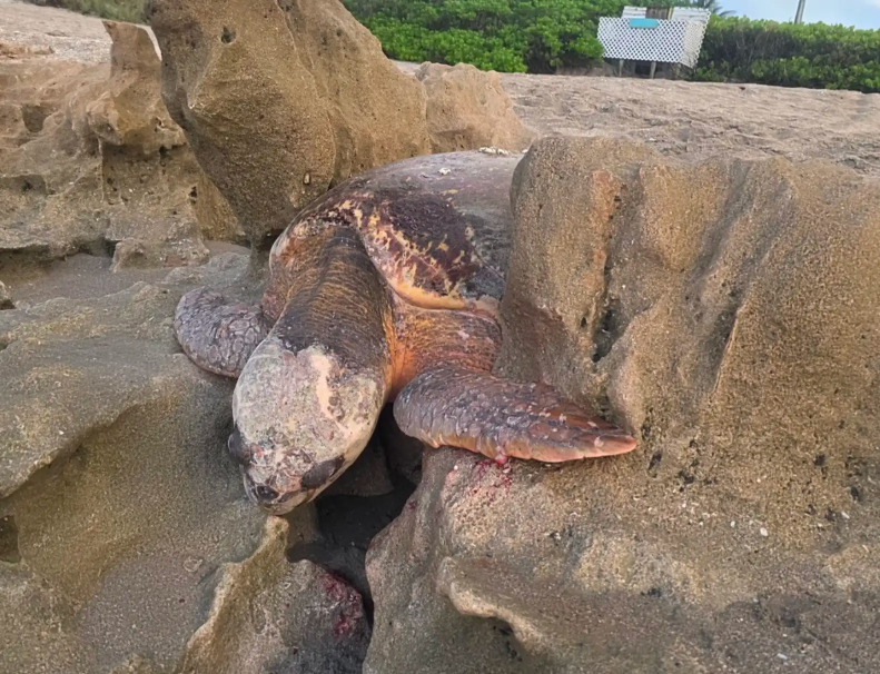 Her heart sank. A massive loggerhead, weighing around 300 pounds, was trapped between the rocks, exhausted and struggling to move.