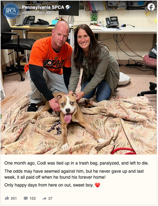 To help more animals like Codi get their second chance, consider donating to the Pennsylvania SPCA.