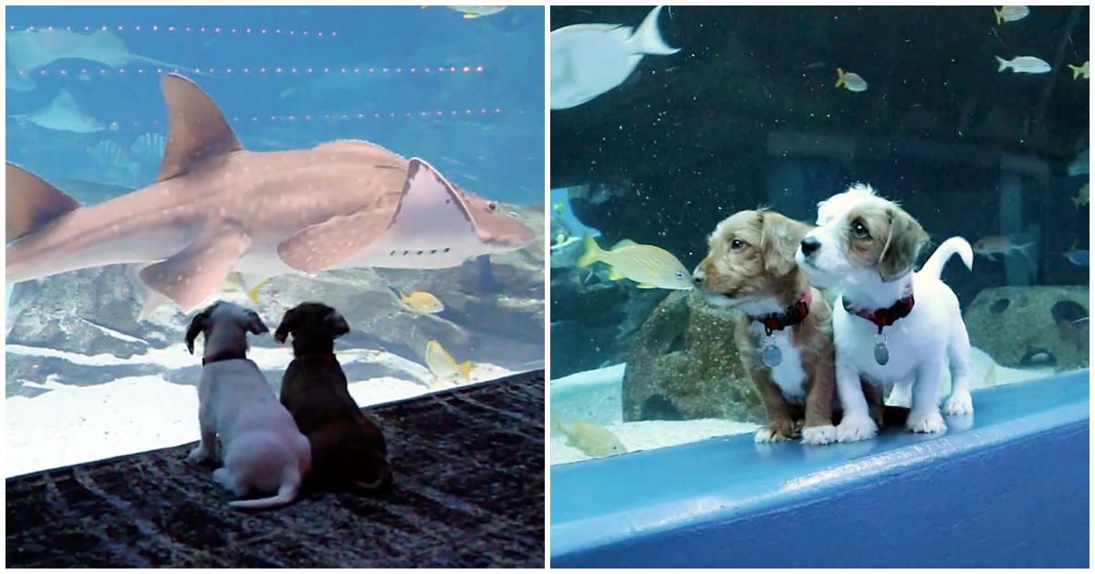 The adorable puppies, Odie and Carmel, were able to explore the aquarium on their little field trip, making new discoveries and befriending the marine life.
