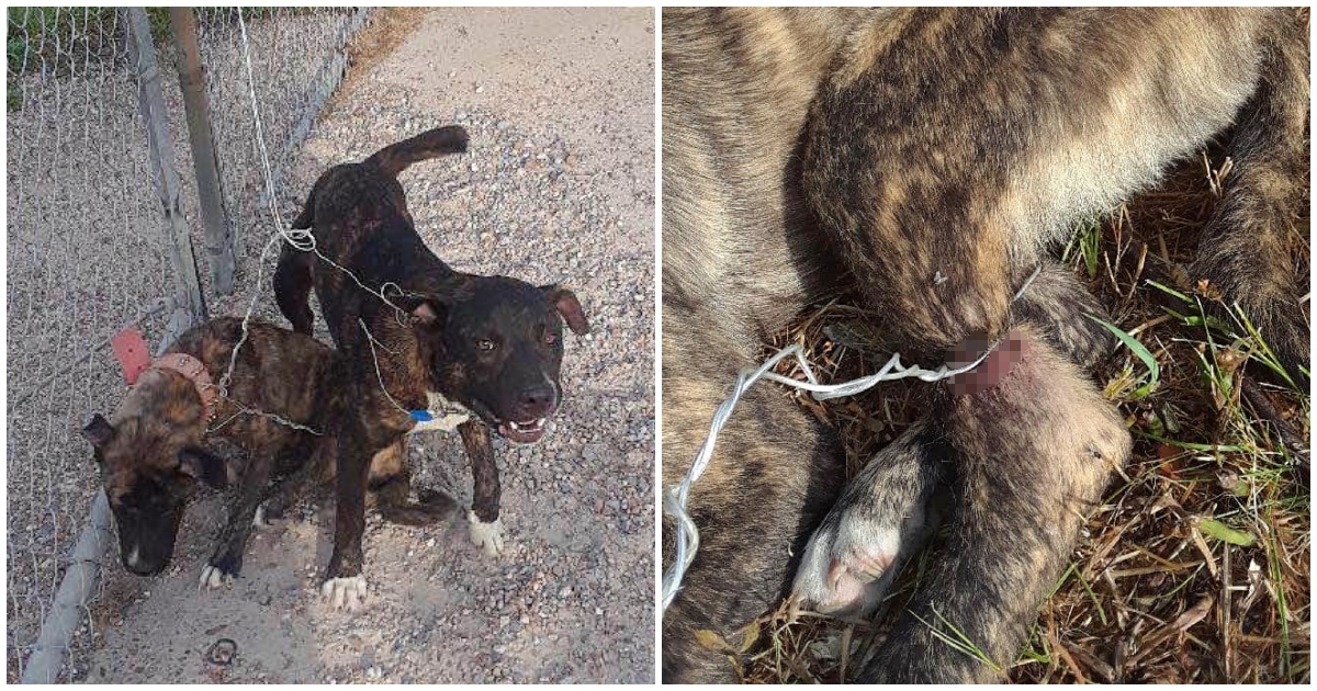 Thankfully, an employee at the Animal Rescue Fund, named Pippa Jackson, discovered the poor pups the next morning and quickly snapped photos to document the abuse. She then freed them and posted the photos on Facebook to share her disgust.