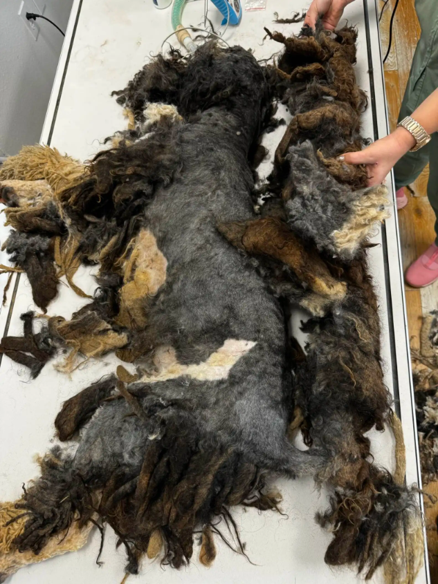 The dogs were rushed straight to AAR’s veterinary clinic. Once vets confirmed they were stable enough for anesthesia, the painstaking process began — shaving away mats that weighed more than 10% of the pups’ body weight.