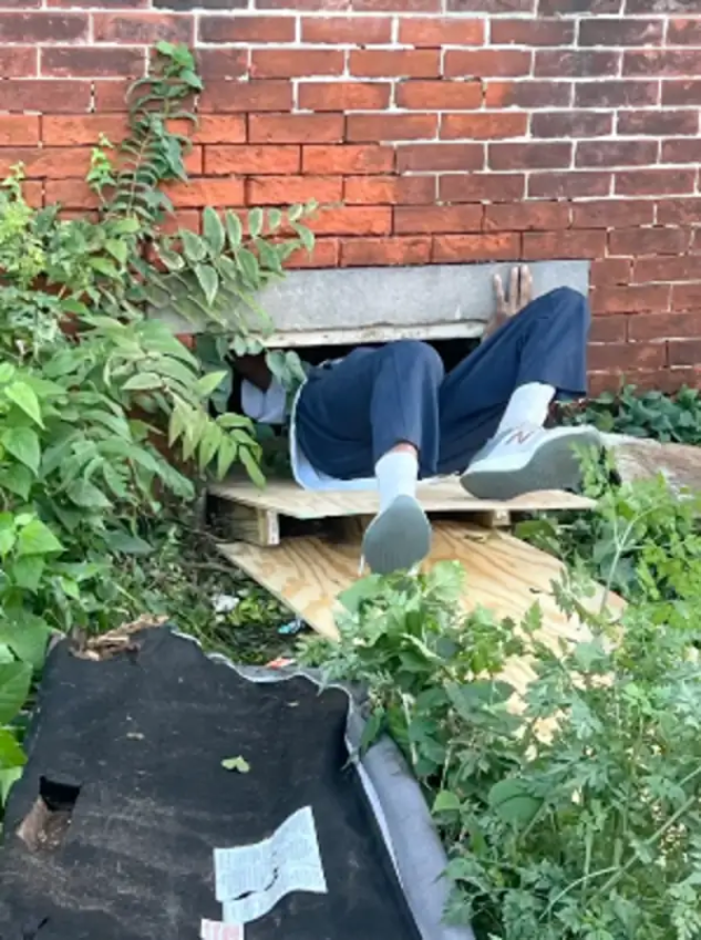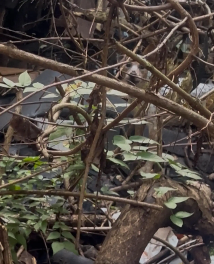 Bell set a humane trap nearby, hoping Lucky would follow the scent of food — but instead, the dog vanished. Moments later, Bell heard faint barking echoing from inside one of the abandoned homes.
