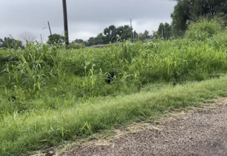 As they scanned the shoulder, their hearts sank. There, in the tall grass, was the dog — frozen in fear, shaking uncontrollably every time a truck thundered by.