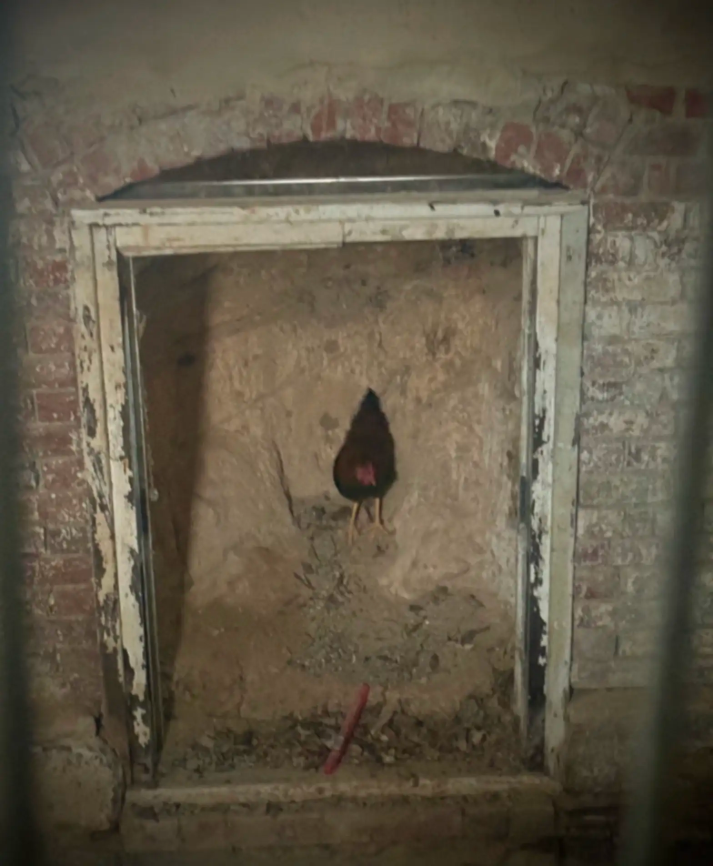 First responders arrived and lowered a ladder into the cramped crawl space, allowing rescuers to climb down and carefully retrieve the frightened rooster.