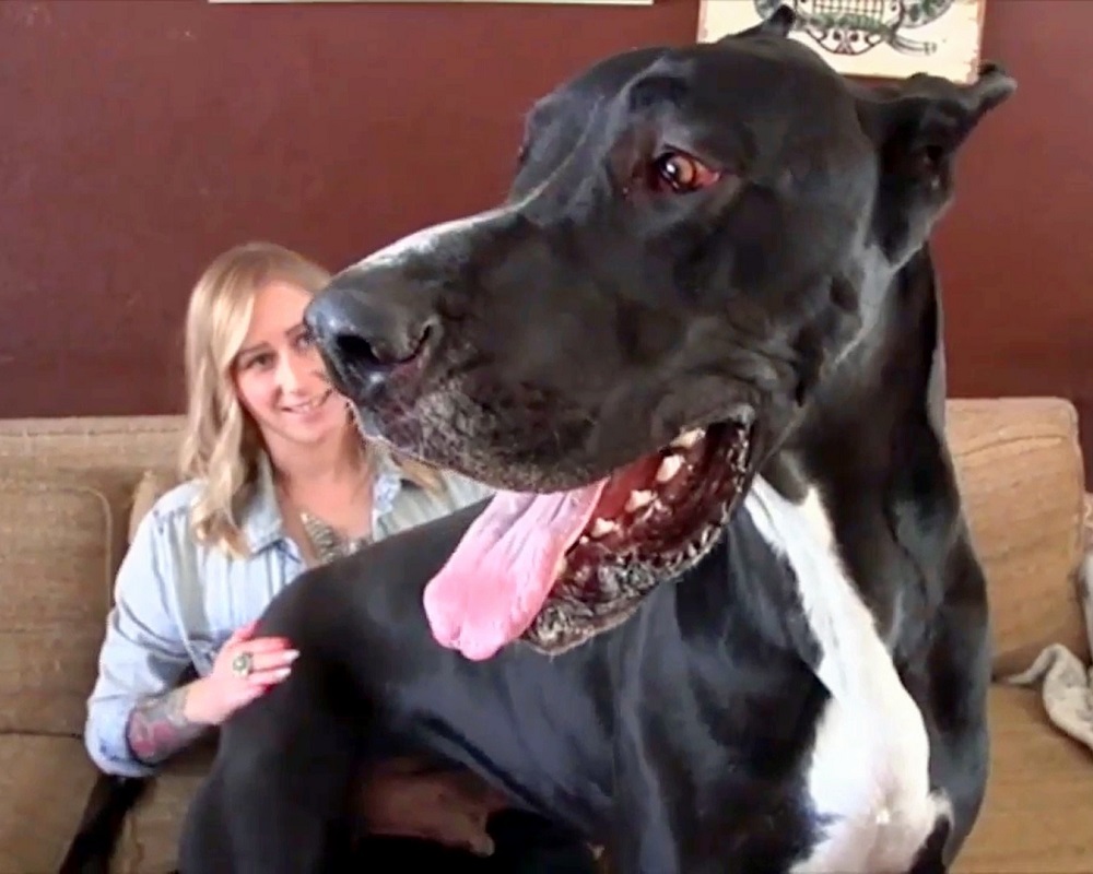 When Nevada couple Nicholas Helms and Jessica Williams got their first Great Dane puppy, they had no idea the little cutie would grow up into a 7-foot-tall giant!