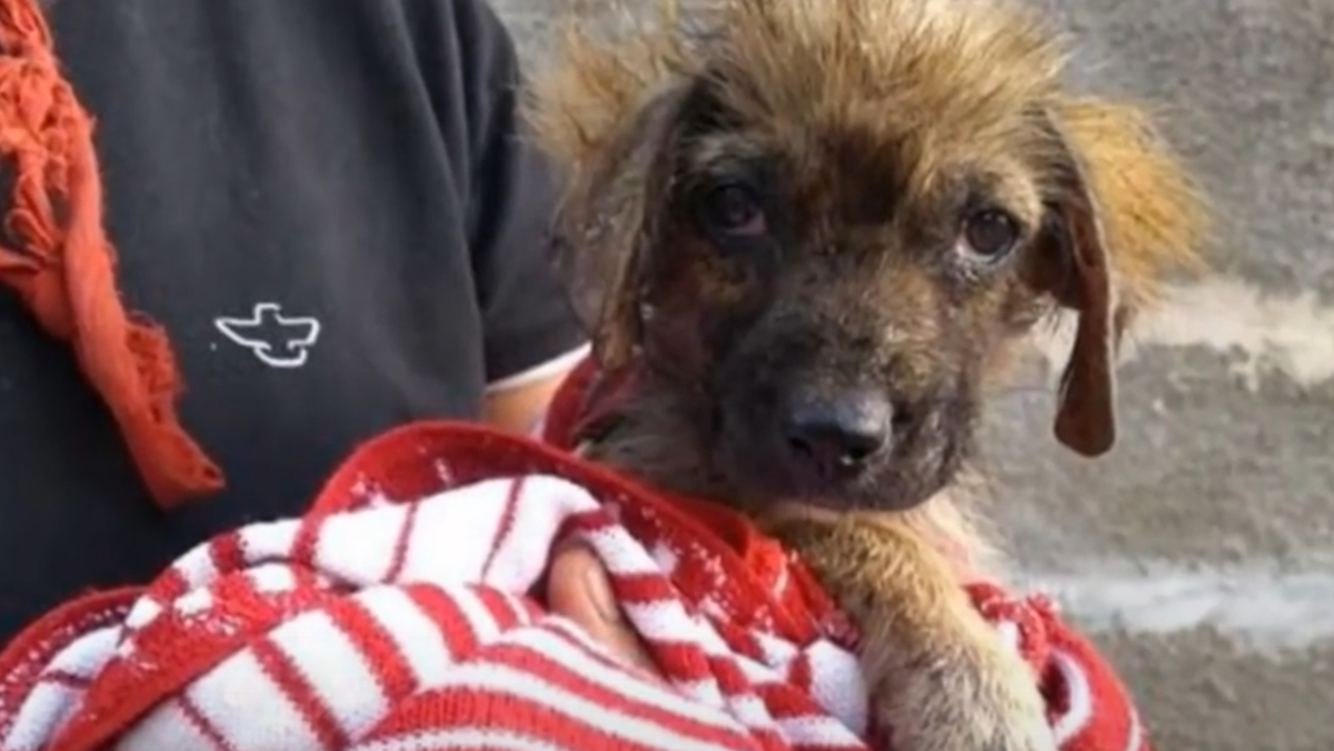 A little puppy was found on the streets looking worse for wear all while hanging his head in shame. It’s as if he didn’t feel he was worthy of the life of a normal dog.